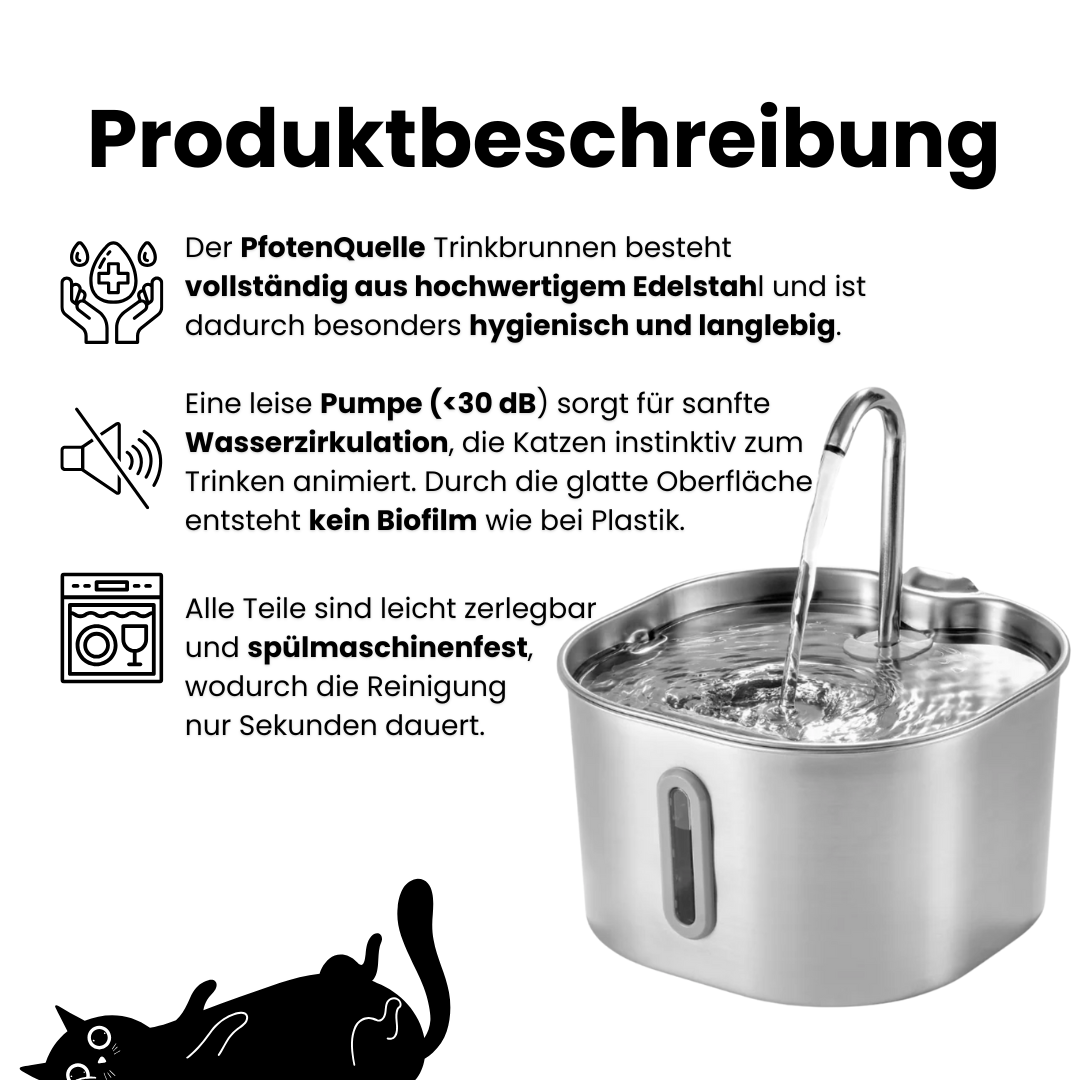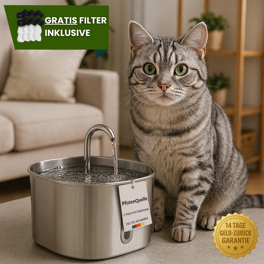 Warum machen wir das? Weil 94% der Katzen den Brunnen innerhalb von 48 Stunden akzeptieren. Und weil wir wissen, dass Sie den erleichterten Blick Ihrer Katze beim Trinken aus fließendem Wasser nicht mehr missen möchten.